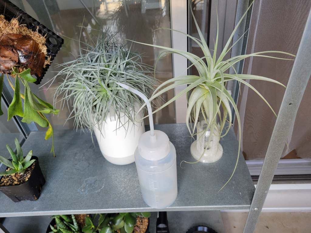 • 頻度: 春・夏・秋は毎日夕方に、霧吹きで葉全体を濡らすようにします。ティランジアは夜中に水を吸うようです。