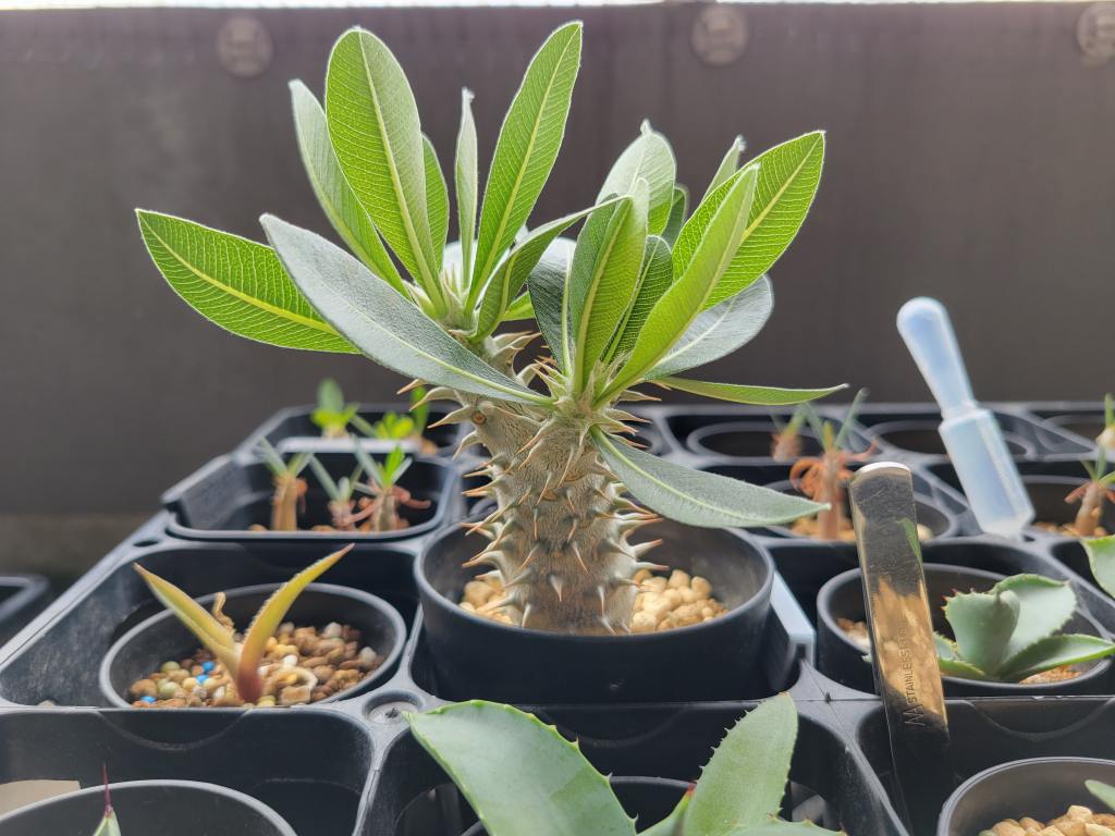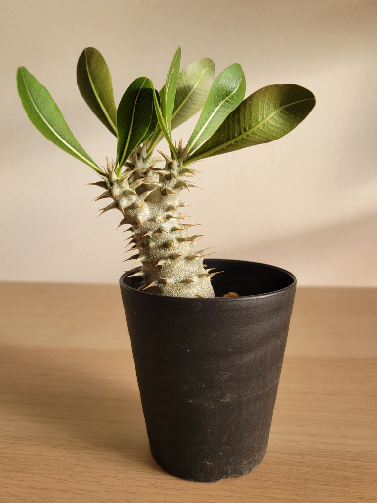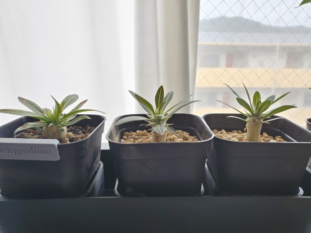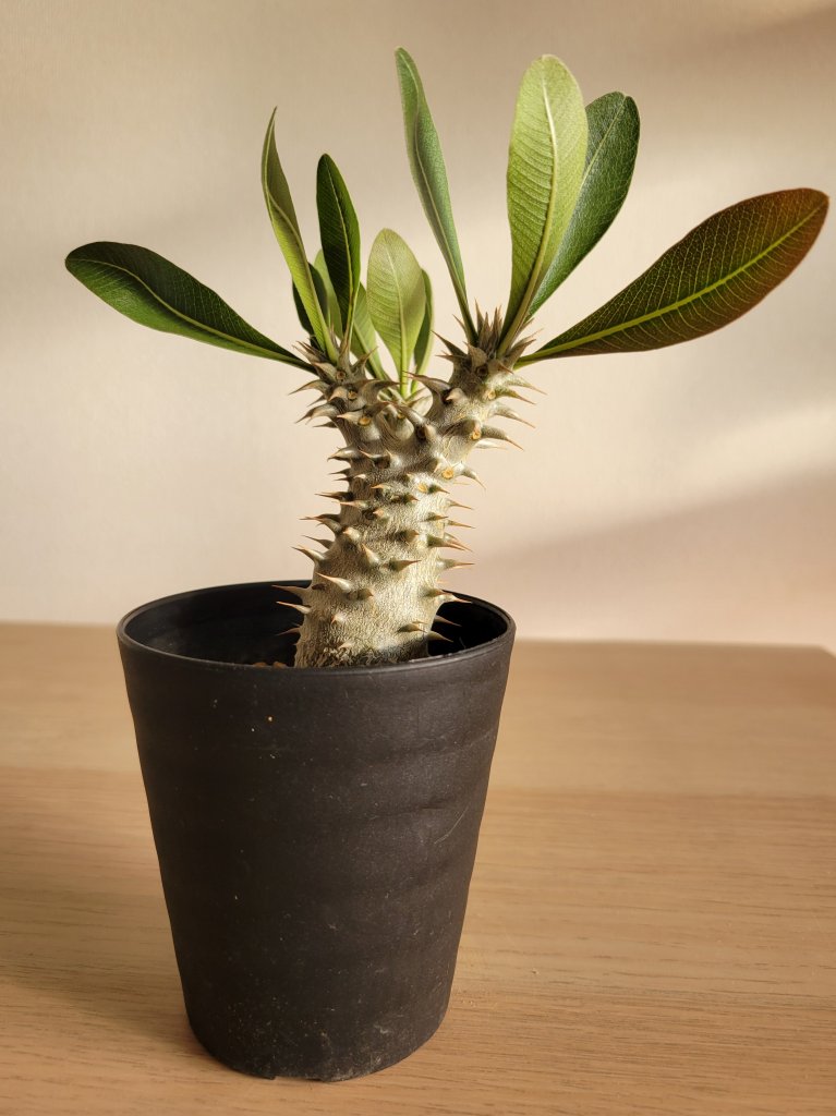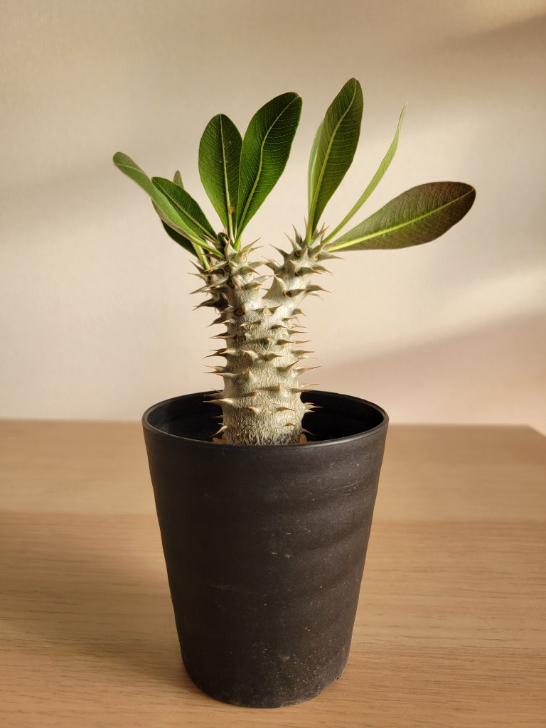 家のパキポディウムでまともに育っているホロンベンセを紹介します。他にも何年もパキポディウムを種から発芽させていますが、枯れてしまったり人にあげてしまってこの一株のみウチにいる状態です。