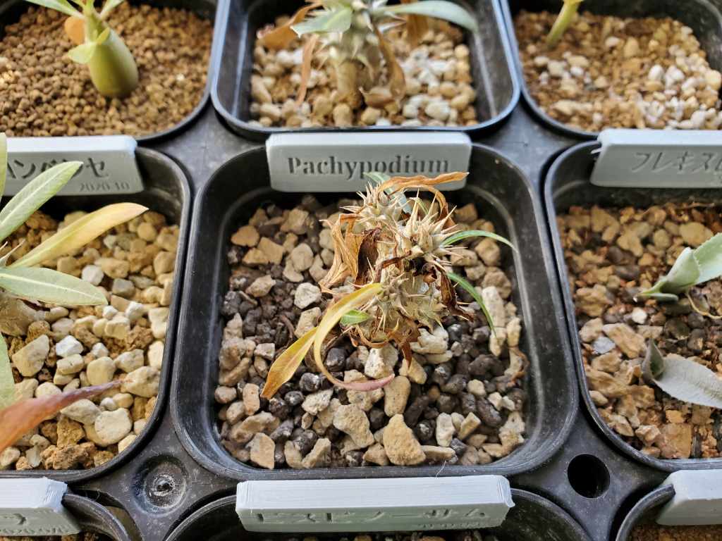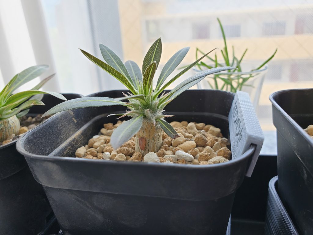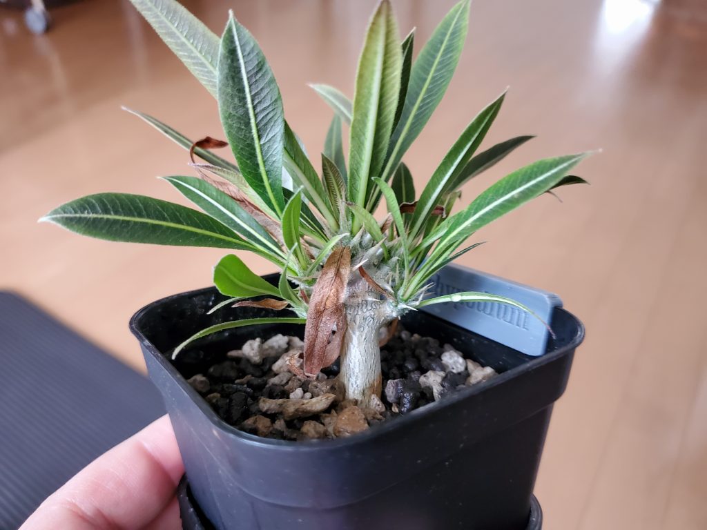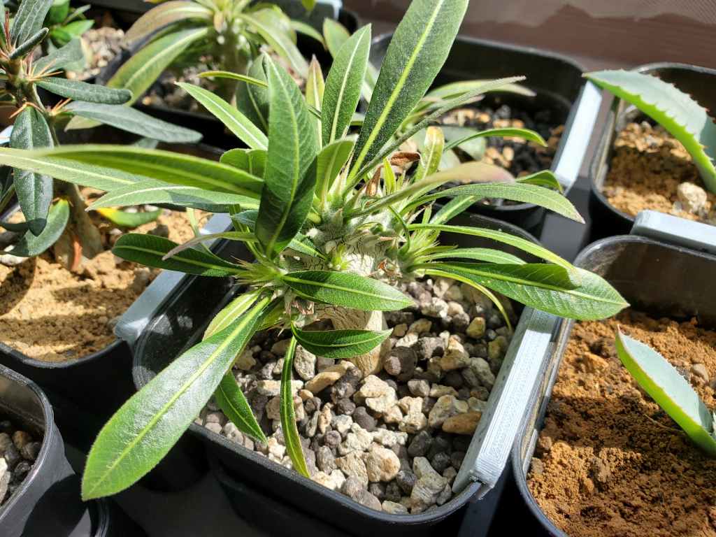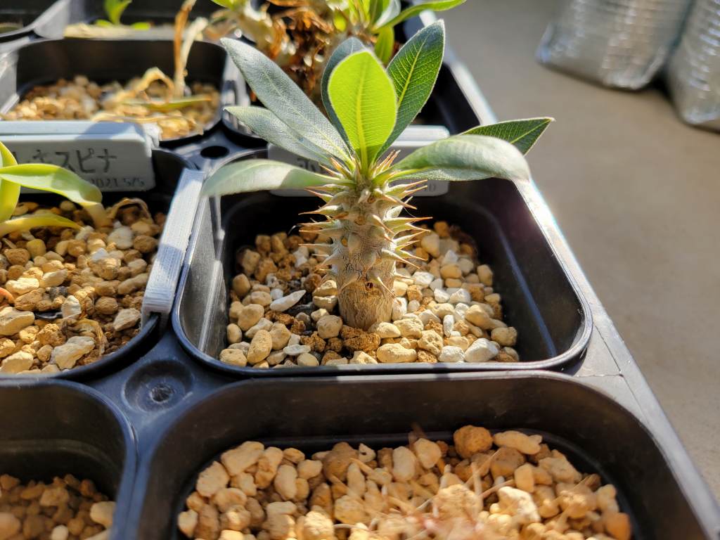 家のパキポディウムでまともに育っているホロンベンセを紹介します。他にも何年もパキポディウムを種から発芽させていますが、枯れてしまったり人にあげてしまってこの一株のみウチにいる状態です。