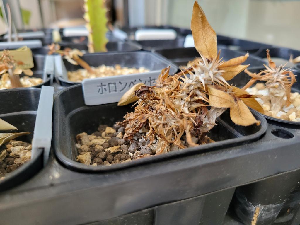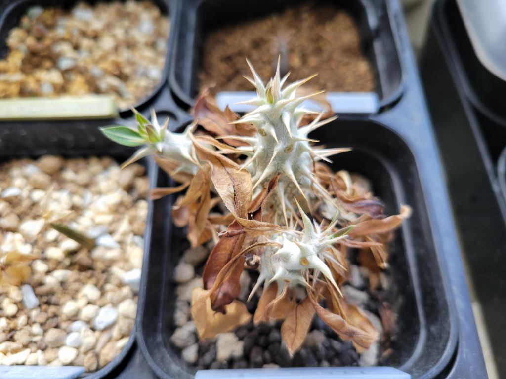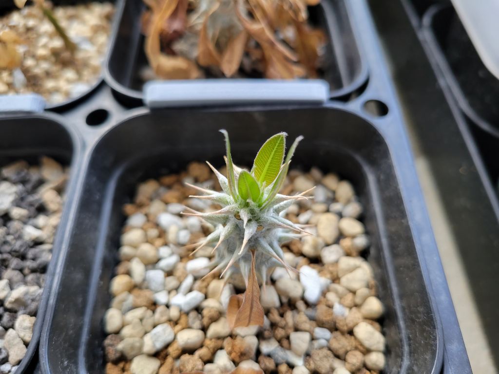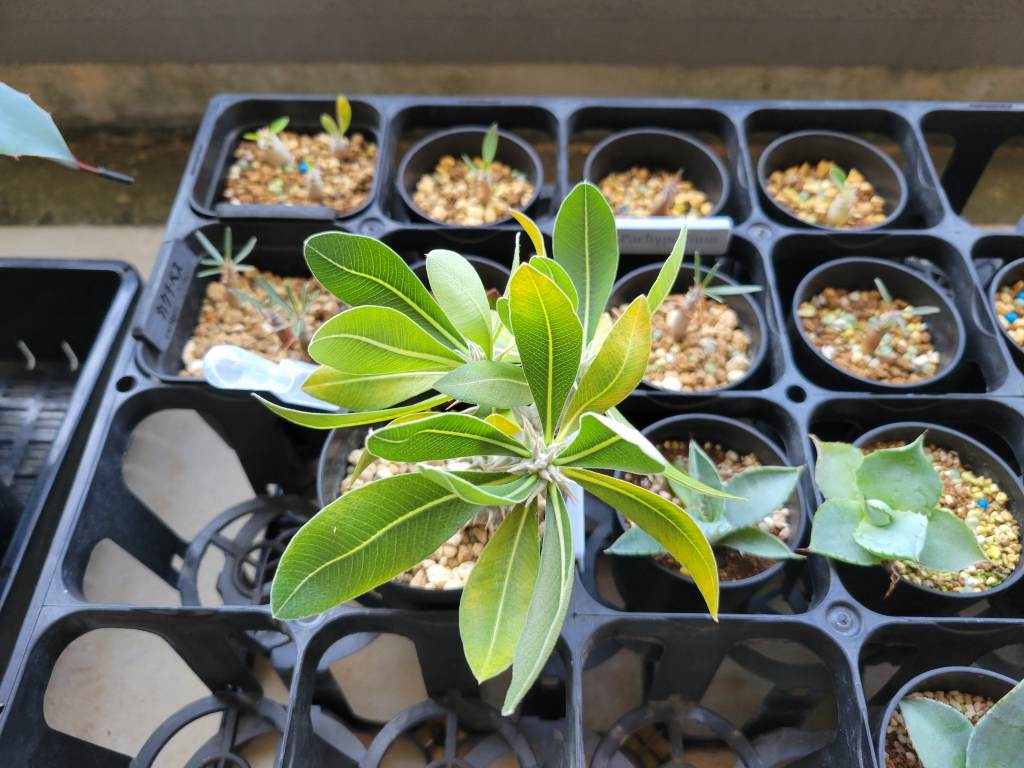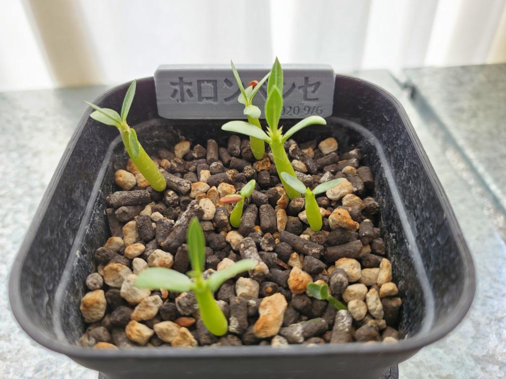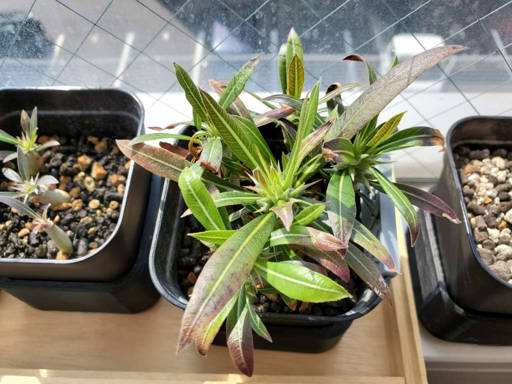 この時は水を毎日あげていたので育ったのかな?わかりませんが、今は冬はちょっと根腐れが怖いので小苗でも水を控えめ(5日に1回ほど)にしていますので成長が遅いのかもしれません。
