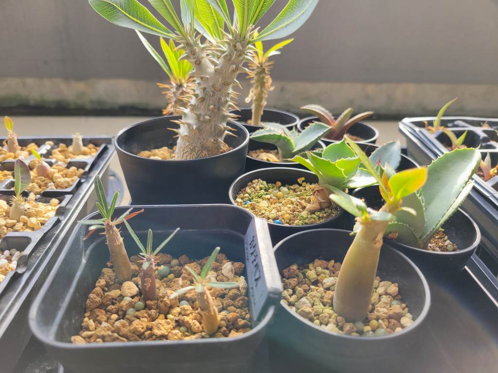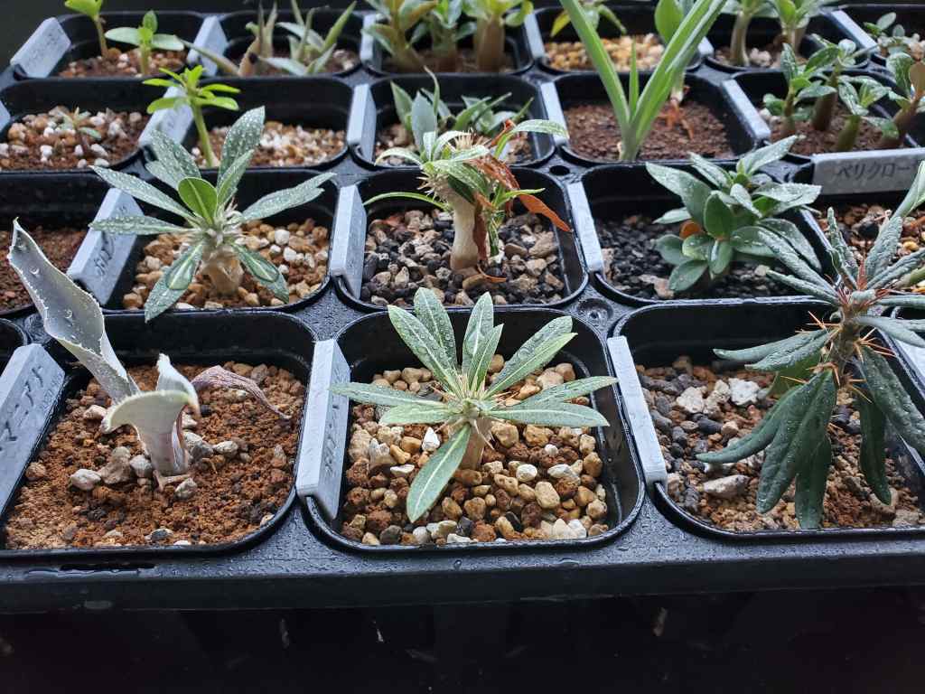 パキポディウムの他にもアガベやユッカなど実生しています。