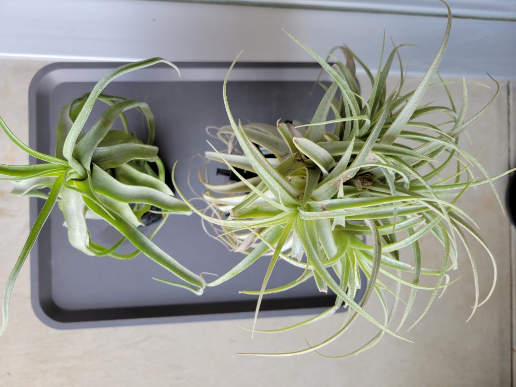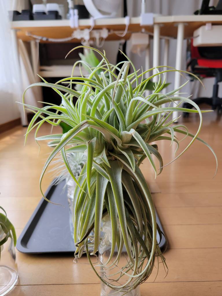 他のティランジアと一緒にベランダの棚の上の日陰で育てています。