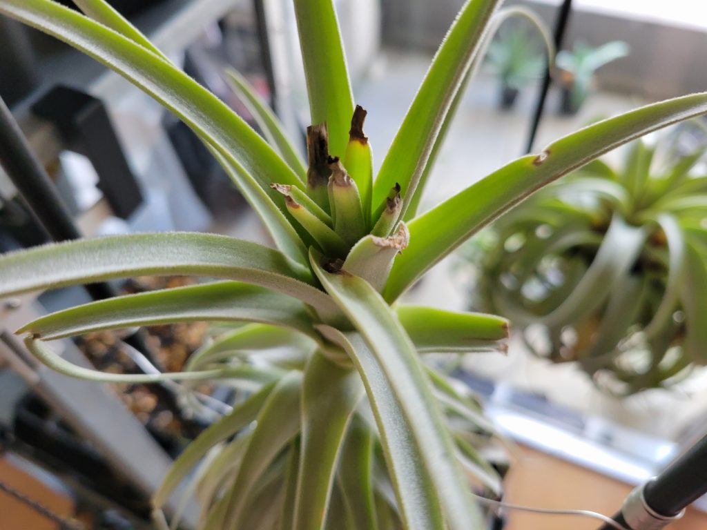 葉が大きくなってくると垂れるようにして下葉が垂れ下がり、上からどんどん葉がでてきてダイナミックなティランジア ストラミネアの成長記録です。