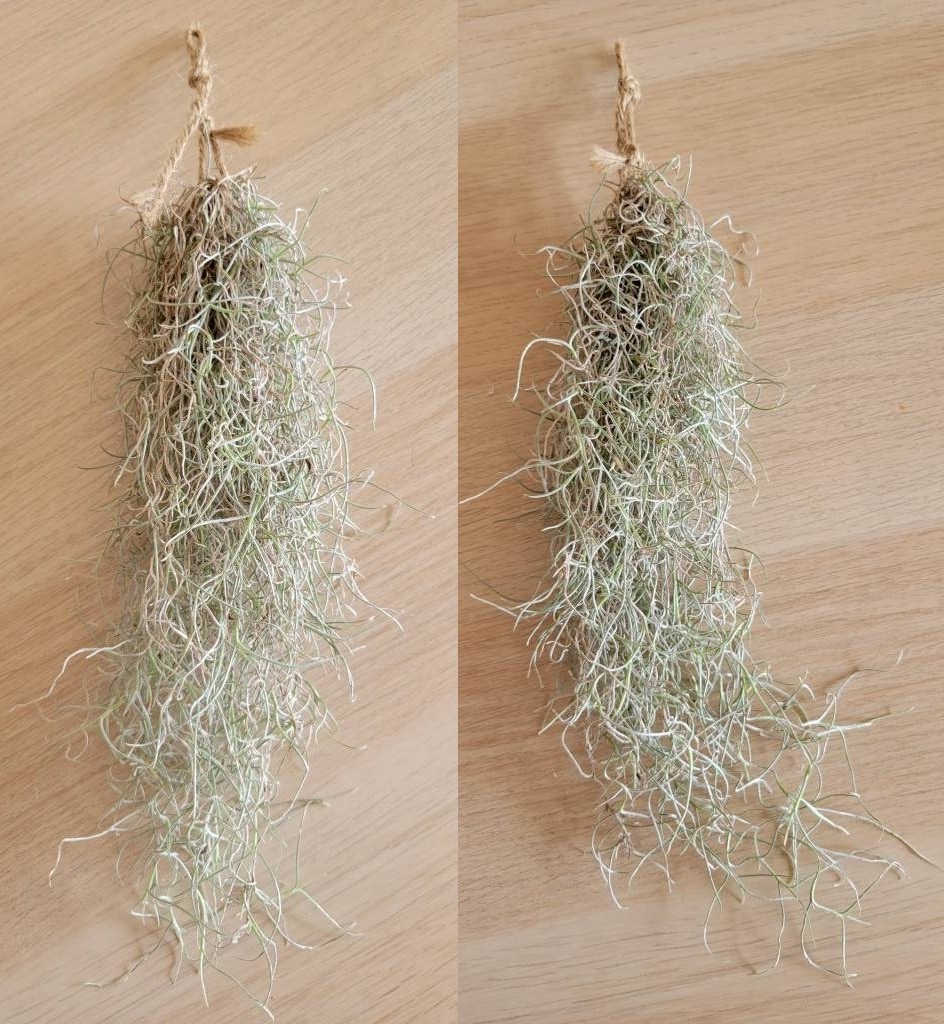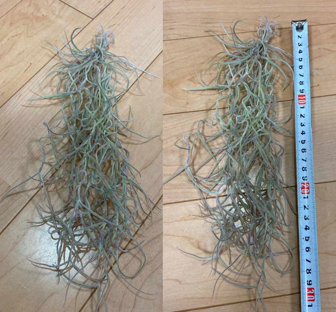 スパニッシュモスは太葉と細葉を買いましたが、オススメは絶対太葉のほうが良いです。細葉だと中が枯れてくるとあまり見た目が良くない感じがします。